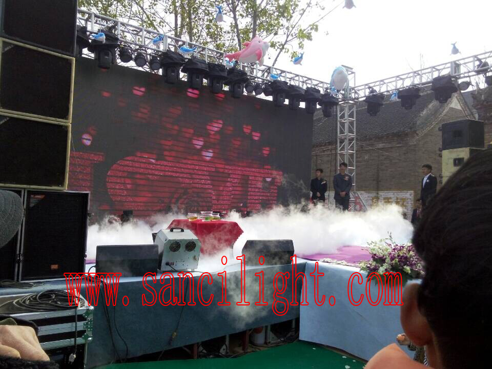 随着潮流发展,婚礼演出越来越得到人们的关注,一场完美的婚礼,舞台灯光使用效果显得尤其重要,它在婚礼现场的作用和贡献不容小视。 2014年11月18号,河南商丘雎县方楼村,一对幸福的新人,正式步入婚姻的殿堂。携手共创,幸福人生。本次婚礼采用三晞灯光的200W摇头光束和LED 54颗3W帕灯、1500W效果烟机。