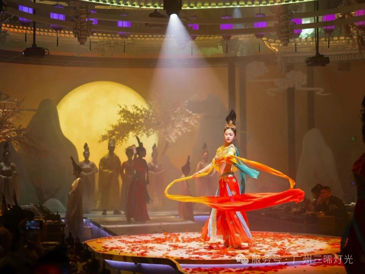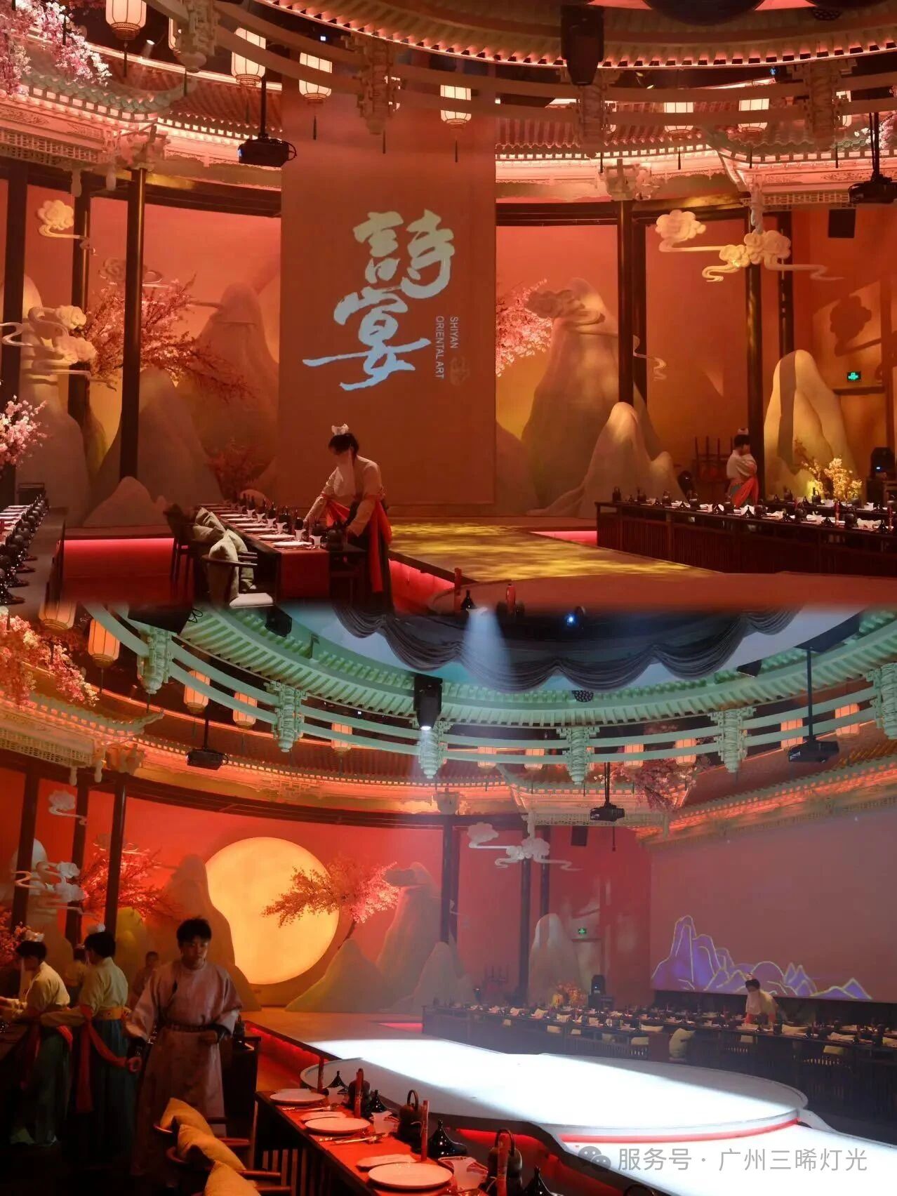三晞灯光以光影合作伙伴的身份,用专业灯具为其赋予了视觉生命,共同定义了何谓“东方美学乐宴”。三晞LED洗墙灯以其卓越的色彩还原性与均匀流畅的过渡效果,大面积渲染墙面、山水造型等载体。它无声地描绘出“明月松间照”的静谧、“青山隐隐水迢迢”的悠远,为整个盛宴铺陈下沉稳而高级的东方美学基调。其“见光不见灯”的纯净表现,确保了观众的视线始终沉浸于意境之中。