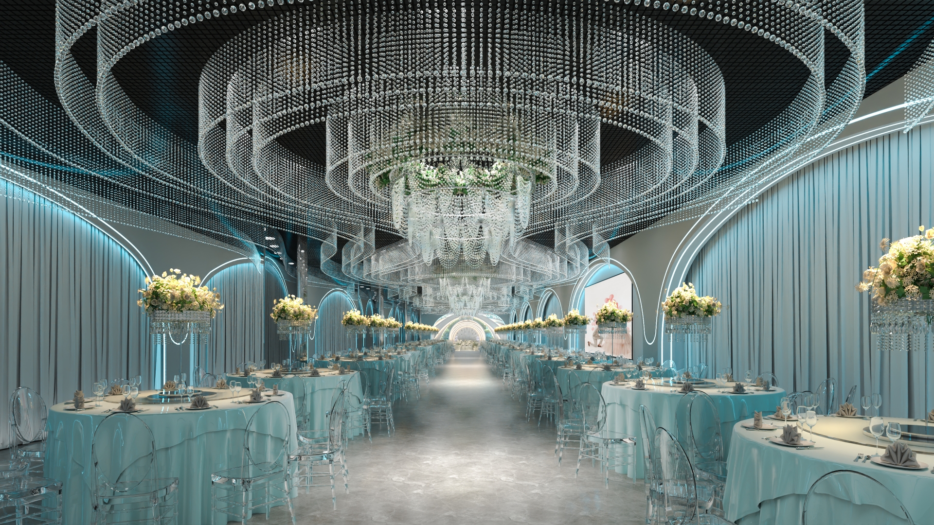 2024年,三晞灯光助力敖家花园酒店焕新升级,打造新式婚礼堂——水晶之恋。
